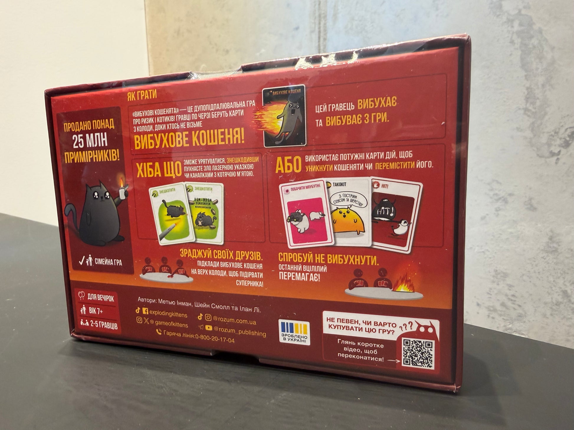 Карткова гра для шанувальників котиків та вибухів, і лазерних указок, і часом цапів.