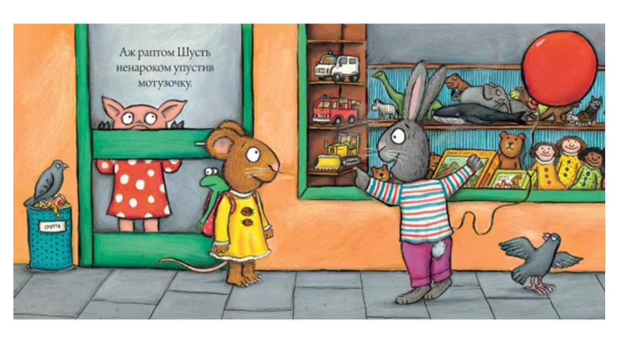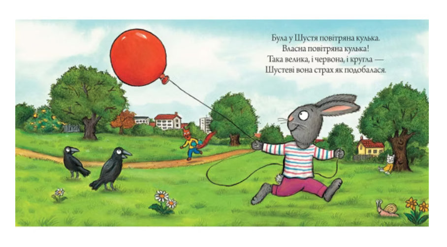Шусть ДУЖЕ тішився своєю повітряною кулькою! Але коли вона випадково полетіла геть і луснула, він страшенно засмутився. На щастя, Шуня придумала дещо чудове — і Шусть знову заусміхався! Чарівна історія для всіх, хто любить кульки і бульки.