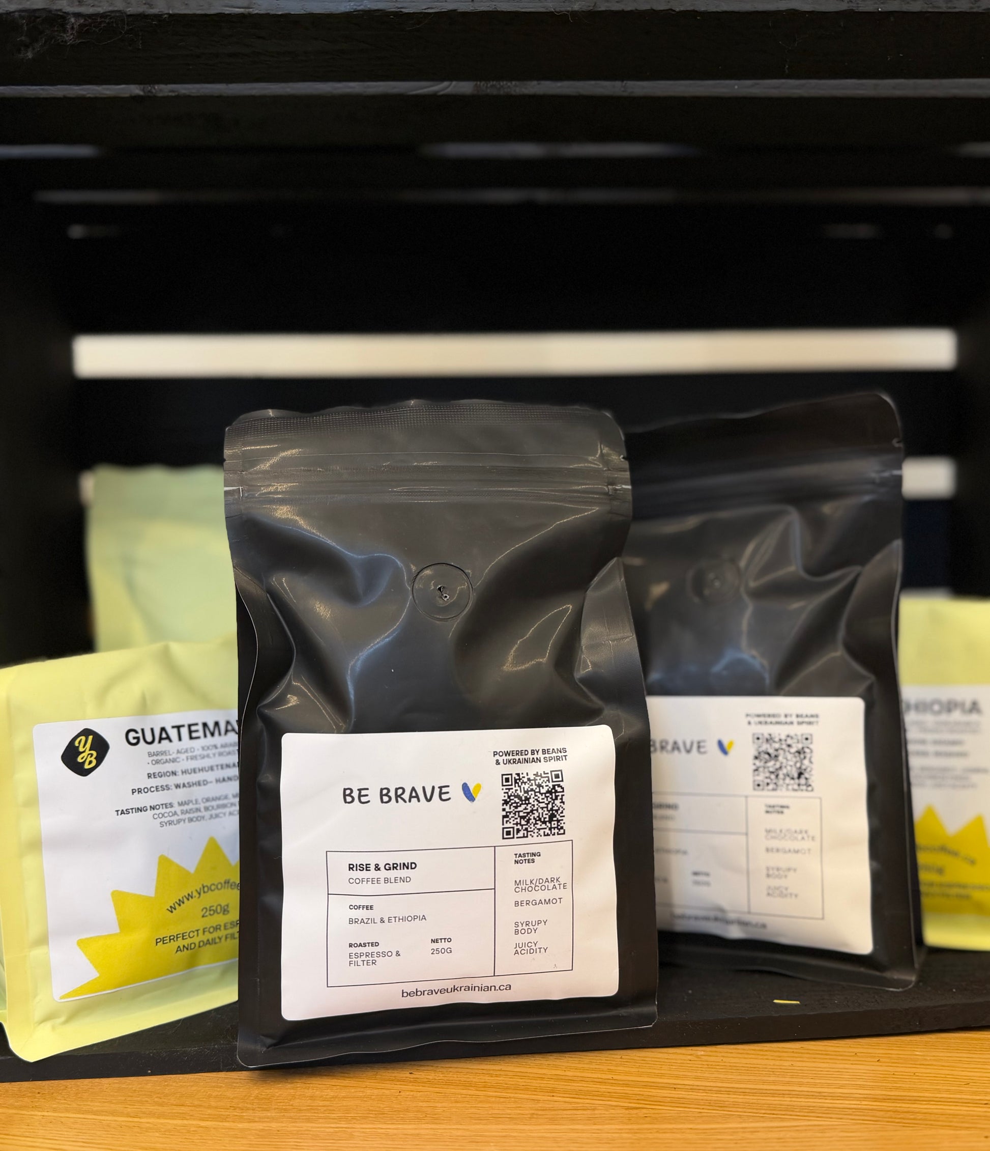 Rise & Grind is a balanced coffee blend from Brazil and Ethiopia, crafted for both espresso and filter brewing.