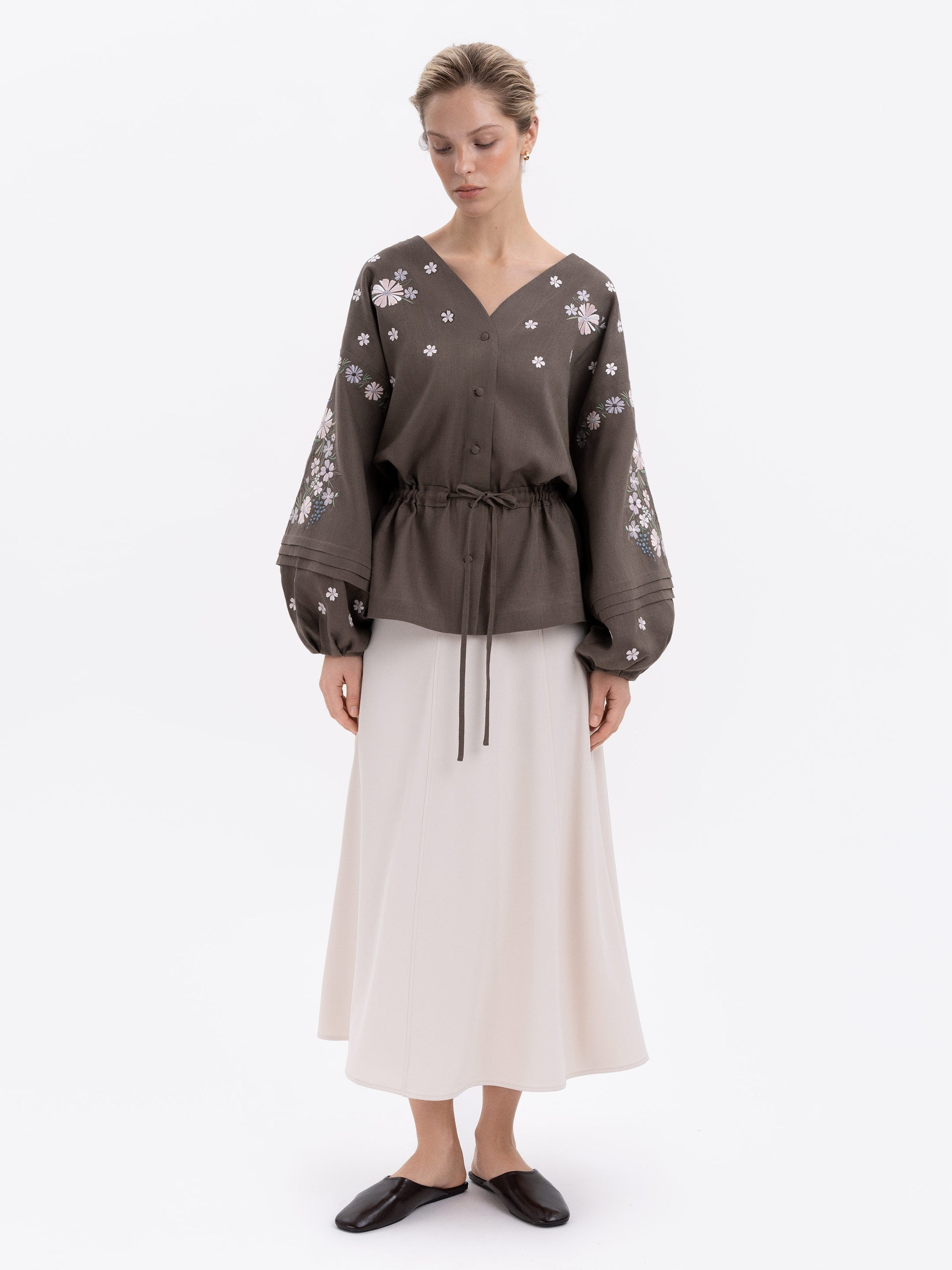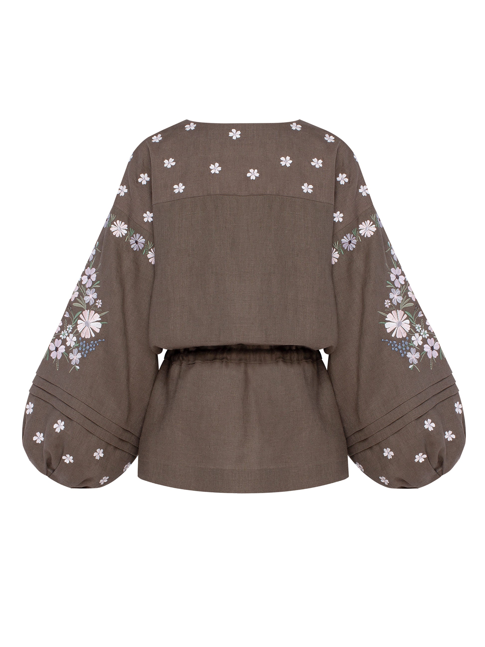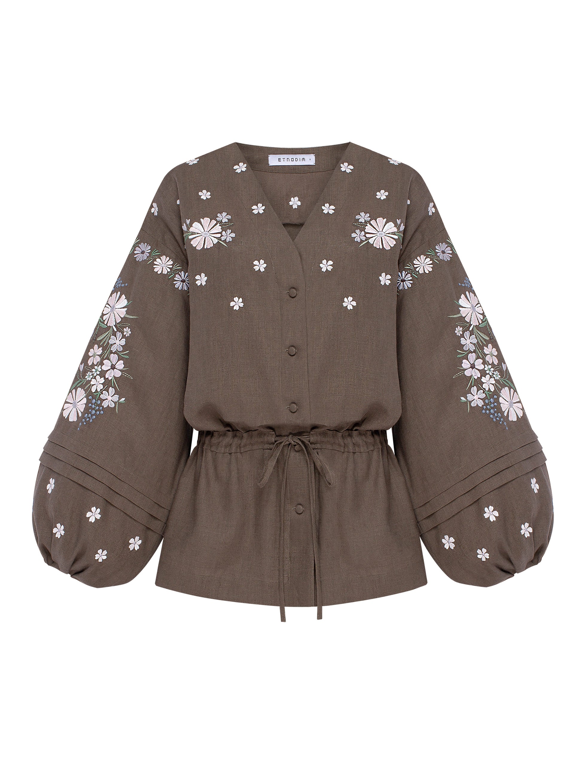 Linen Embroidered Blouse with Floral Pattern "Budzhak" dark