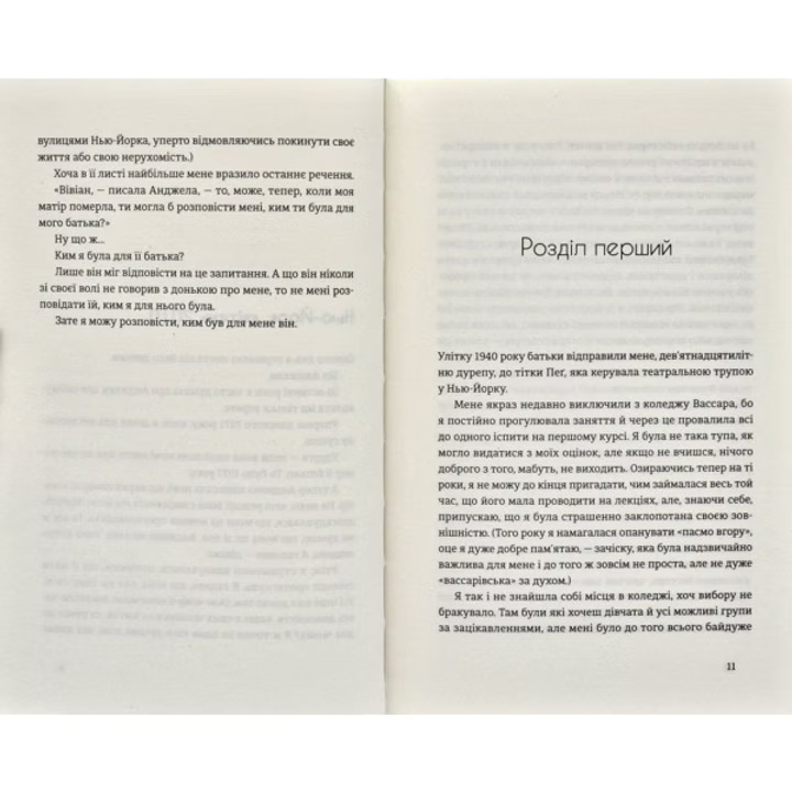 Це інтригуючий роман про жіночу сексуальність і свободу, про відвагу бути собою і право жити так, як тобі хочеться. А ще — історія дуже незвичайного кохання, на яке наклала свою тінь війна, та справжньої дружби, яку нелегко знайти, зрозуміти та оцінити, особливо в такому непростому і мінливому місті, як Нью-Йорк.
