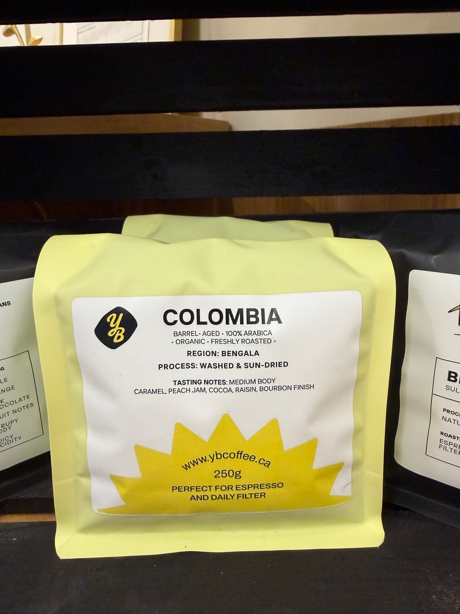 Discover a bright and aromatic cup with our Colombia single-origin coffee. Made from 100% Arabica beans, this coffee is organic, barrel-aged, washed and sun-dried to bring out its natural character and complexity.