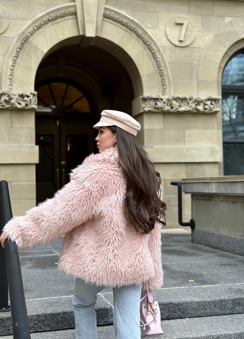 Elevate your style with the Reversible Faux Fur Coat “Tigrado,” available in stunning vibrant blue, and delicate pink. Designed for those who love versatility and luxury, this 65 cm coat features a unique reversible design, offering two looks in one.